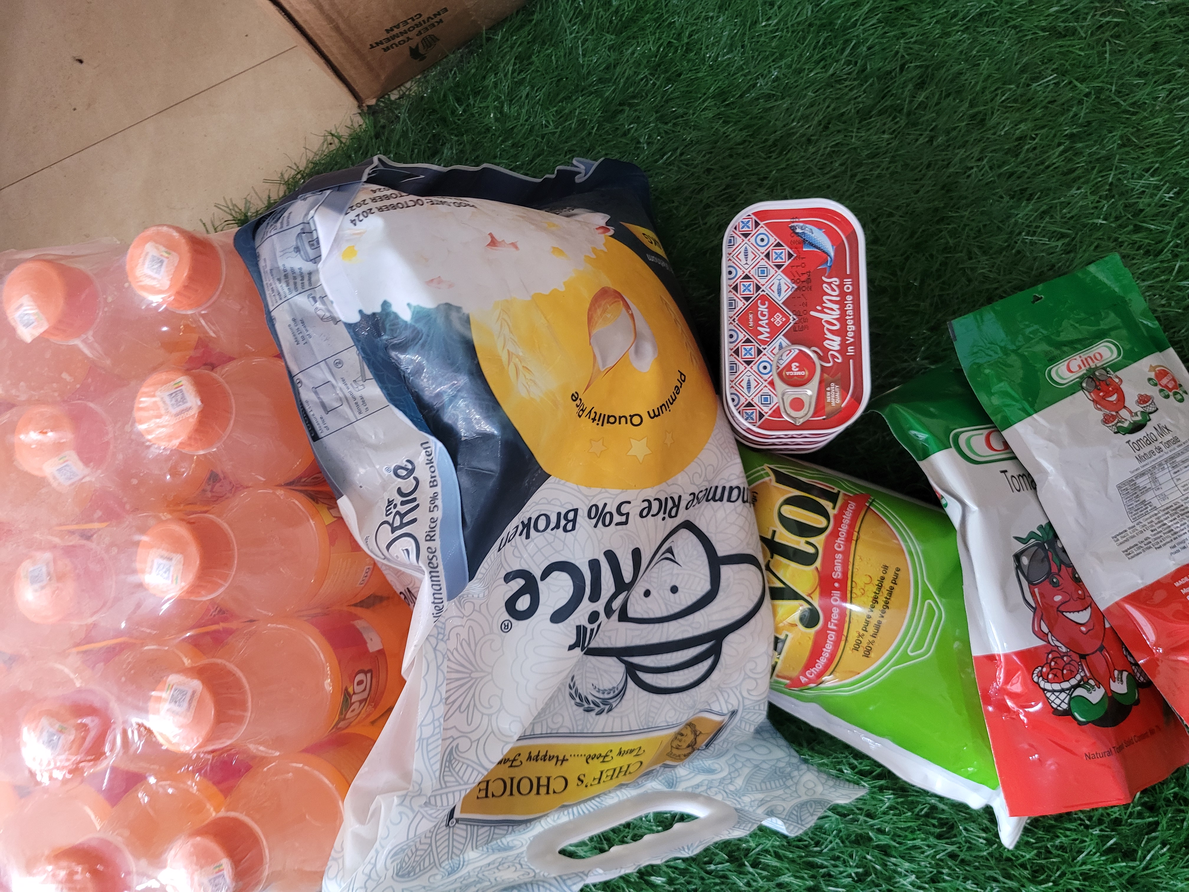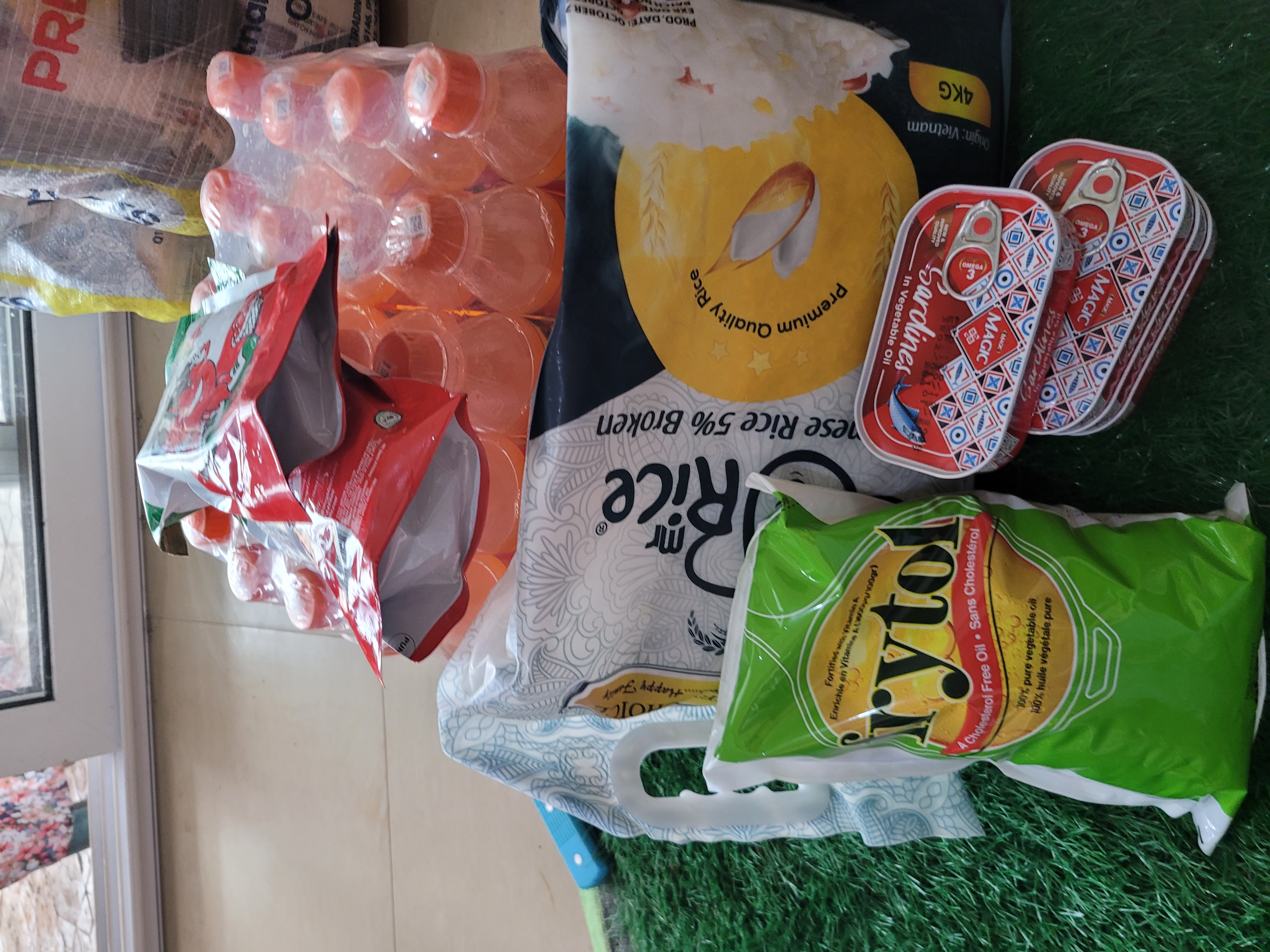 Each family got a small package consisting of rice, oil, sardines and drinks.